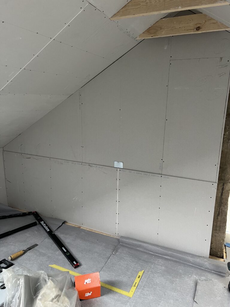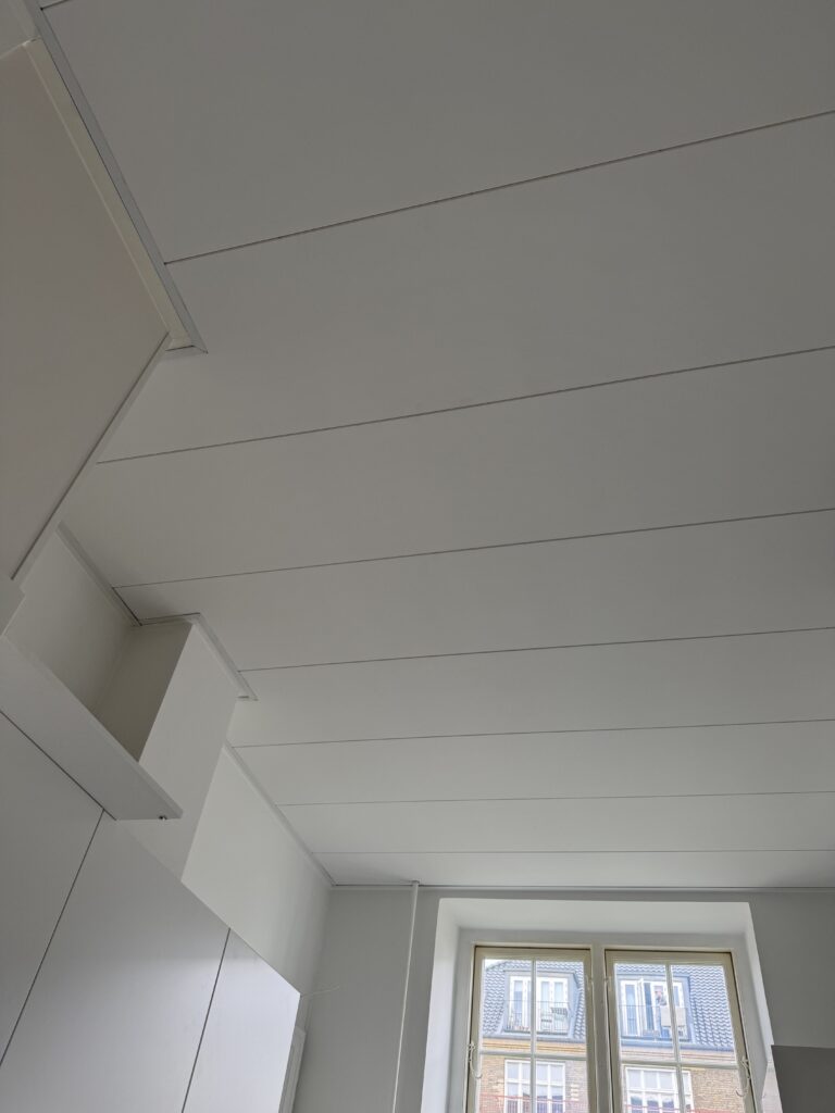 Et flot og plant loft giver rummet et lyst og harmonisk udtryk. Vi monterer gipsvægge og lofter i høj kvalitet – både til nybyg, renovering og mindre reparationer.