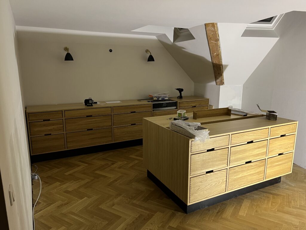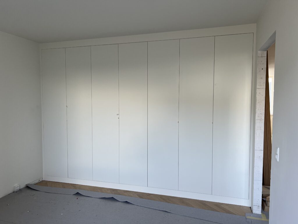 Vi designer og bygger skabe efter mål, så de passer præcist til rummets dimensioner og dine behov